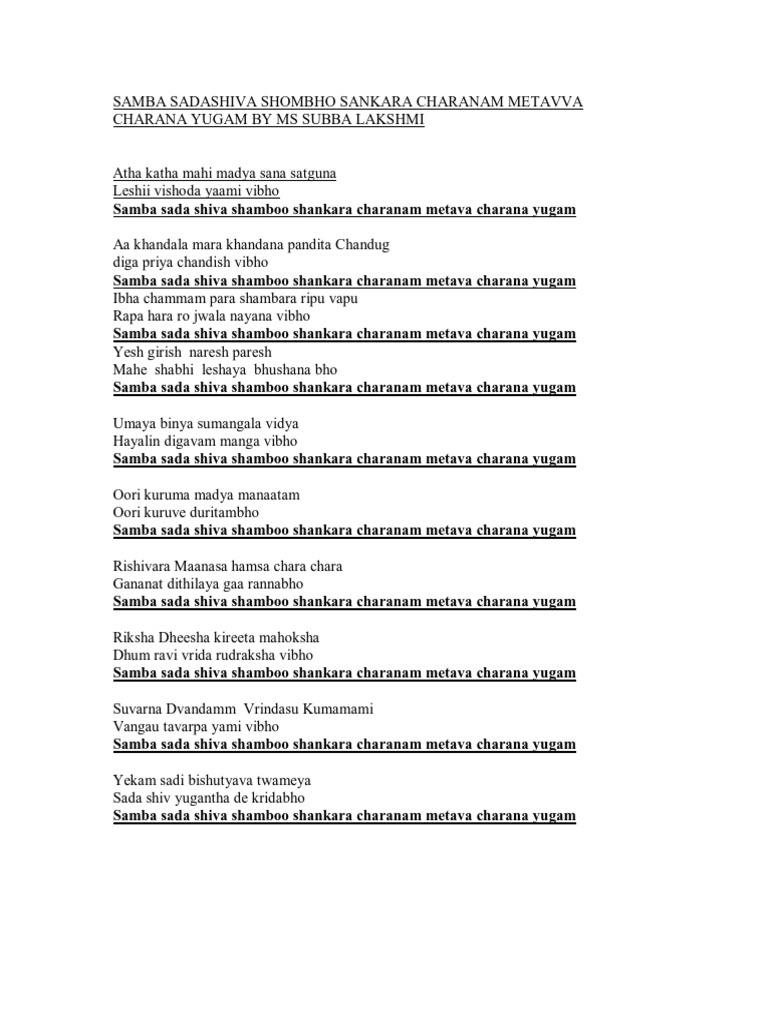 Samba Sada Shiva Shambho Shankara Lyrics : Bhavahara purahara puttapartheeshwara shambho shankara sadashivom. Samba Sada Shiva Shambho Shankara Lyrics - Samba sadashiva shambho shankara lyrics powerful song of lord shiva fullsong om namah shivay.